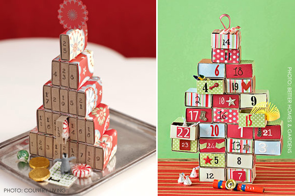 Árbol calendario de Adviento hecho con cajitas de fósforos