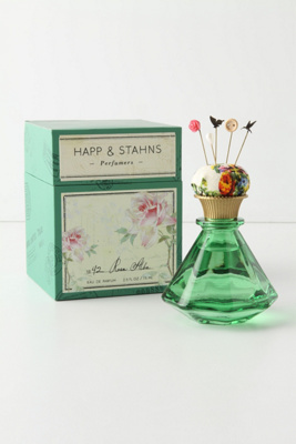 Nunca he sido fan de los perfumes, esos aromas fuertes que están de moda y pretenden llamar la atención de cualquiera que se aproxime, para mí, sólo atraen miradas de saturación y hostigamiento. Pero esta maravilla, inspirada en el siglo 19, envasada en una botella verde de estilo victoriano, con una tapita acolchada usada como alfiletero me hizo pensar: ¨lo encontré, esta hecho para mi¨...su nombre "ROSA ALBA"